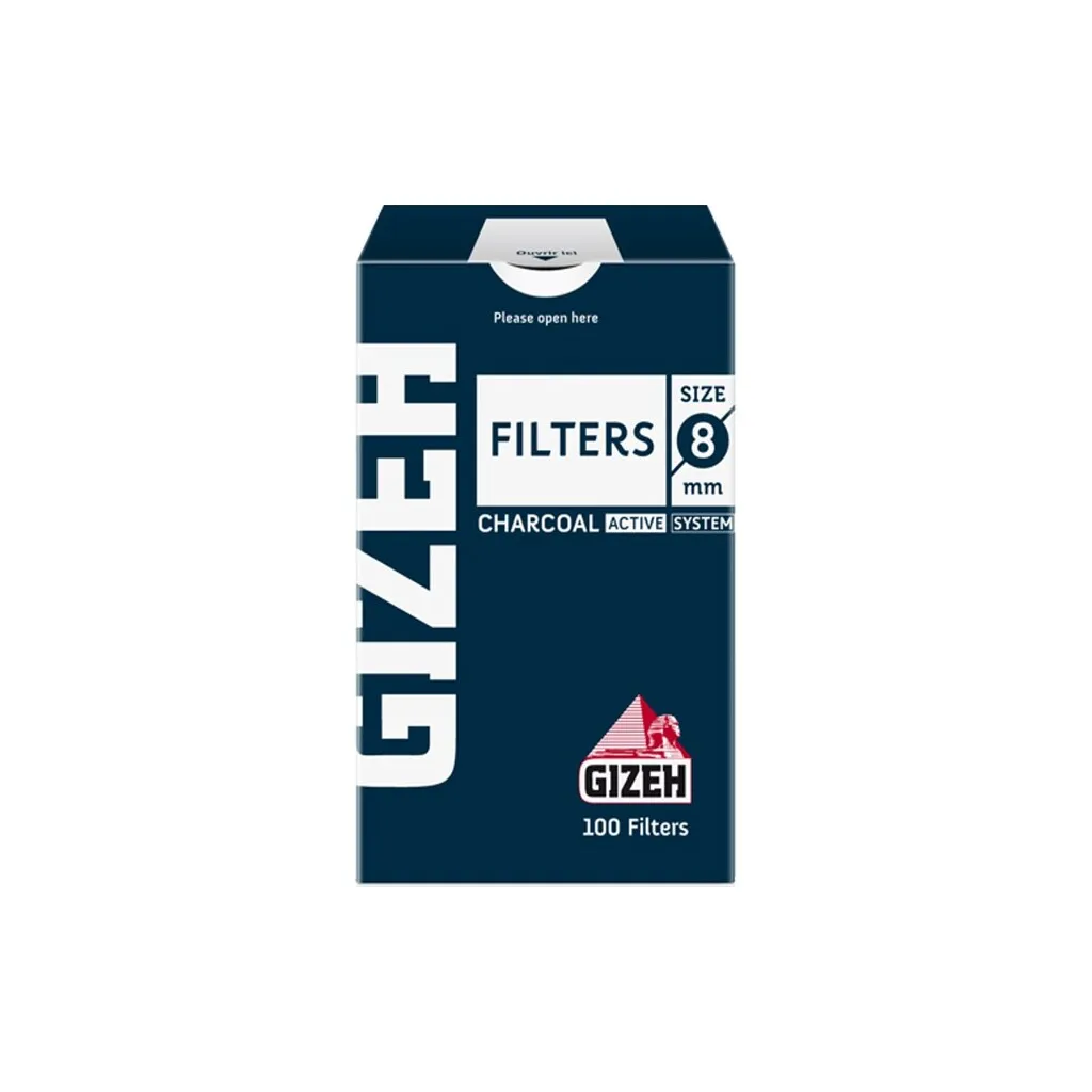 Gizeh Filter Charcoal 8mm su valjkasti filteri prečnika 8 mm, idealni za sve koji žele kvalitetniju i zdraviju alternativu u svetu ručno motanih cigareta. Ovi filteri su pažljivo dizajnirani tako da sadrže tračicu sa lepkom od prirodne arapske gume, dobijene iz soka Akacija drveta. To garantuje čistoću i sigurnost pri svakom korišćenju. Pakovanje sadrži 100 filtera, upakovanih u praktičnu kutiju sa perforiranim otvaranjem na vrhu, što omogućava lako vađenje i dugotrajnu svežinu svakog filtera.